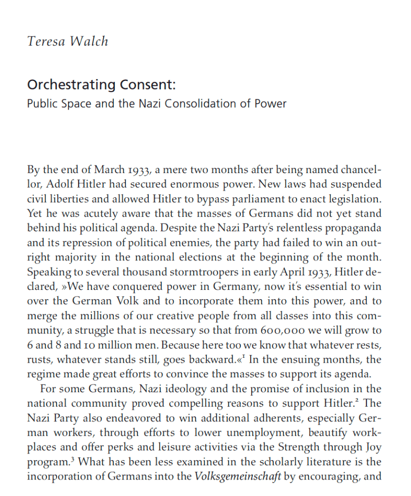“Orchestrating Consent: Public Space and the Nazi Consolidation of Power“